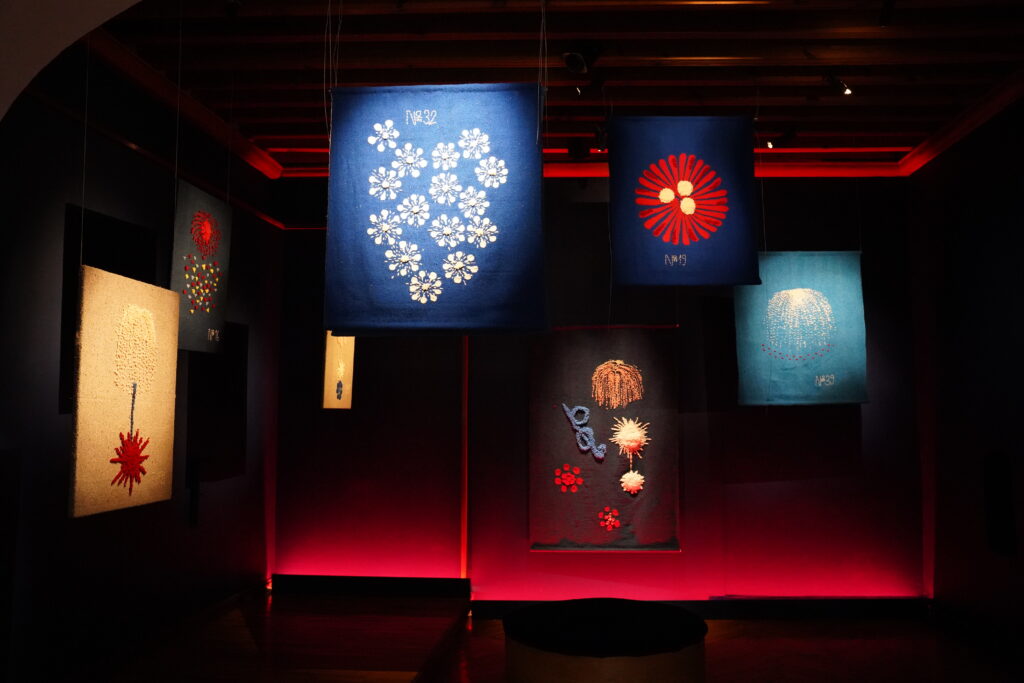 Bordar el fuego. Marta Moreno (enero). La artista contemporánea Marta Moreno fusiona arte e historia a través del punch needle. En sus obras, reinterpreta los primeros registros ilustrados de fuegos artificiales, como el Catálogo ilustrado de explosivos de día y noche, publicado por The Hirayama Fireworks Company, en Japón alrededor de 1877. La exposición, realizada en colaboración con la galería Proyecto H, en el marco de la feria de arte ZONAMACO, interactuará con obras de la Colección Permanente del Museo e invitará a los visitantes a explorar la conexión entre la pirotecnia ancestral y sus infinitas posibilidades artísticas.